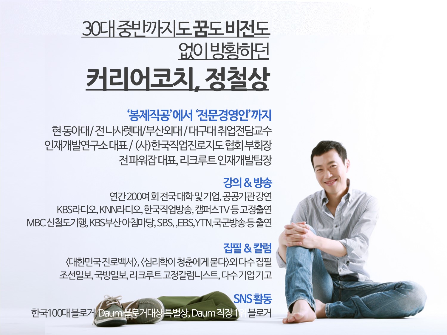사실 어떤 강의를 하더라도 다른 사람 앞에 선다는 것 자체가 이제는 심판대에 오르는 상황과도 마찬가지인 어려운 처지다. 따라서 다양한 사람들의 비평과 평가로부터 자유롭기 어려운 것이 강사라는 직업일 게다. 그런 면에서 나 역시 자유롭지 못한 사람이라 늘 조심스럽다. 소위 직업철학의 중요성을 강조하는 사람이 여기저기 수없는 직장을 옮겨 다니기도 하고, 취업전략을 강의한다고 하는 사람이 번듯한 대기업 일자리 한 번 잡아보지도 못하기도 하고, 진로 강사라고 알려져 있으면서도 자신의 진로조차 제대로 찾지 못한 적이 있으며, 비전 강의를 한답시고 해놓고 자신의 꿈조차 찾지 못하고 헤맸던 적이 수두룩했기 때문이다.