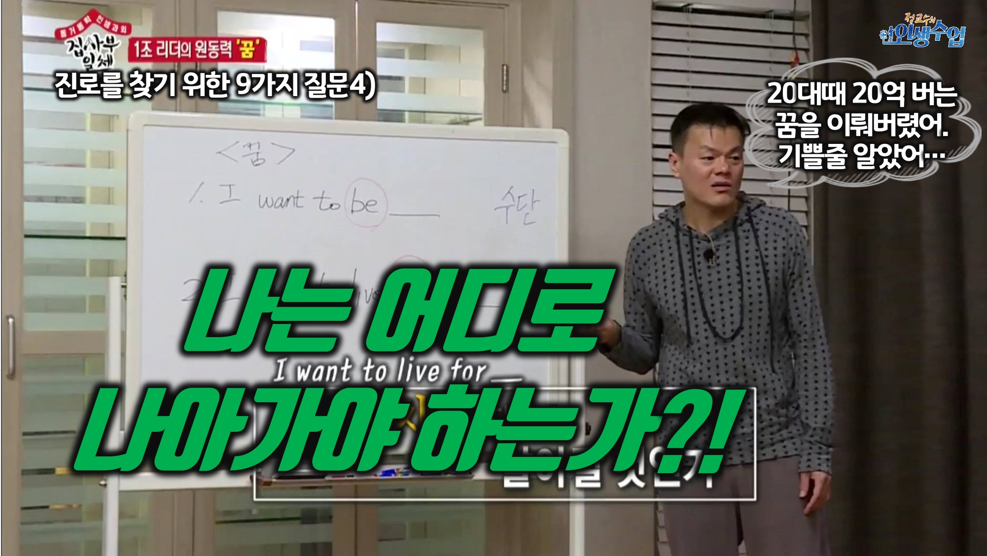 #비전수립 #방향탐색 #꿈찾기 #꿈너머꿈 #역경에마주쳤을때 #SMART기법 #나는어디로나가는가 #어디로나아가야하는가 #박진영의꿈과가치 #집사부일체박진영 #박진영명언 #박진영인생조언 #꿈과비전 #가슴뛰는비전 #진로찾기질문 #9가지질문 #인생설계 #생애설계 #진로선택가이드 #진로교육 #진로탐색방법 #진로설계 #진로가이드 #진로로드맵 #진로와직업 #진로교육 #진로상담 #취업특강 #진로특강 #대한민국진로백서 #진로수업 #인생수업 #정교수의인생수업 #진로코치 #커리어코치정철상